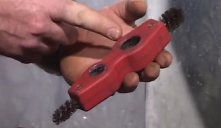 Use a pipe cleaning tool, as pictured, to make sure the all the pipe surfaces are clean and free from debris. This will give you a better seal. You can also use wire wool to achieve this.