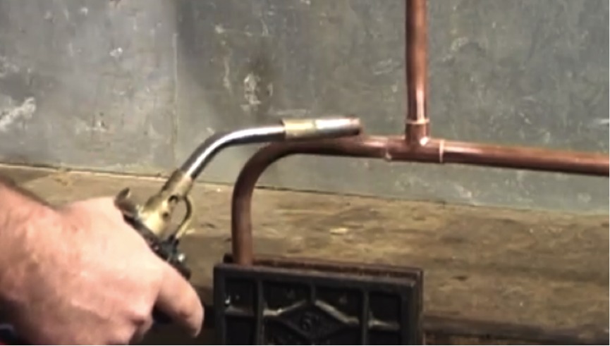 Once the pipes are assembled as required, use the blowtorch to bring the copper up to temperature.