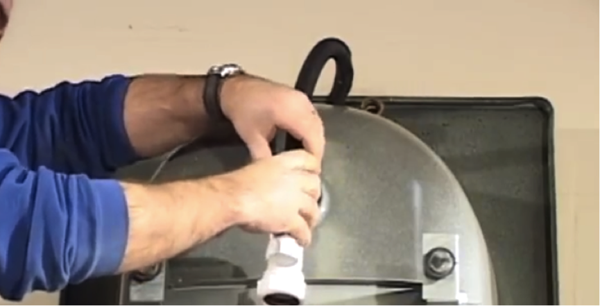 Make sure the rubber washer is in position. Line it up with the trap and hand tighten, making sure the threads do not cross. If you do get a crossed thread, this can cause leaks.