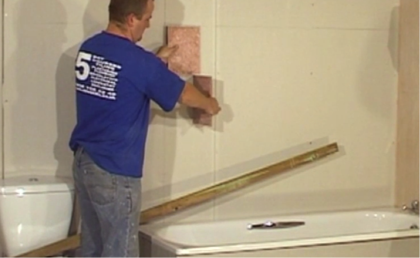 A baton is a length of wood that runs all the way along your length of the wall to be tiled. Measure out and cut to size before you start. The baton can be any thickness or width, the important thing is that it needs to be straight and not bowed.