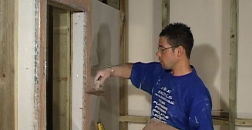 For smaller areas, use your trowel to apply plaster, then use the edge of the trowel in the same way as a feather edge, up against the set beads. Or you can continue to use your feather edge on all areas until you end up with a nice clean surface.
