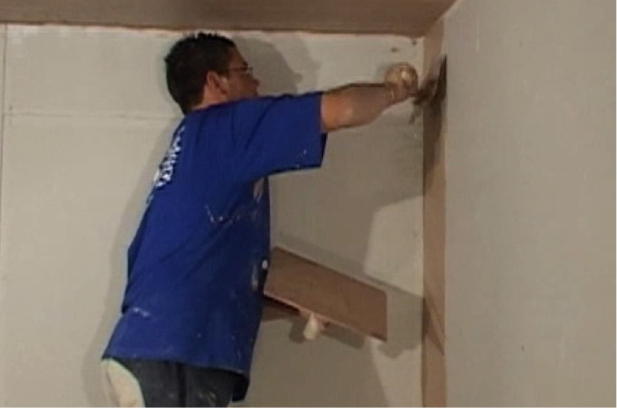 - Spread the plaster out from any internal angles and then work back out from the corner until smooth and evenly spread