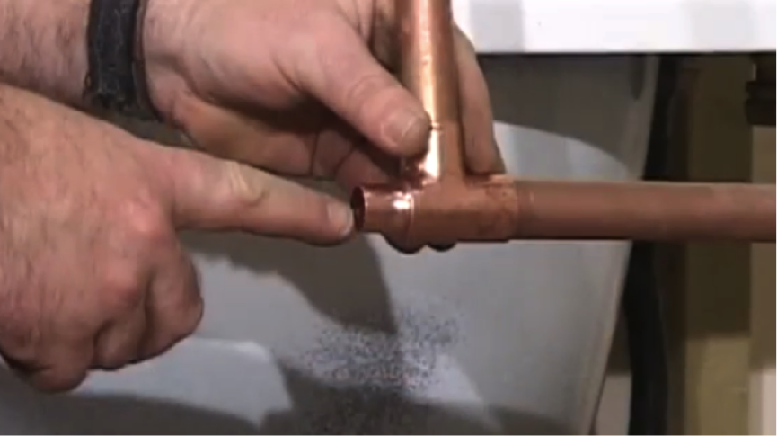 Clip the pipe back in, slide up to the joins and connect them together in the correct way (again using solder may be necessary).