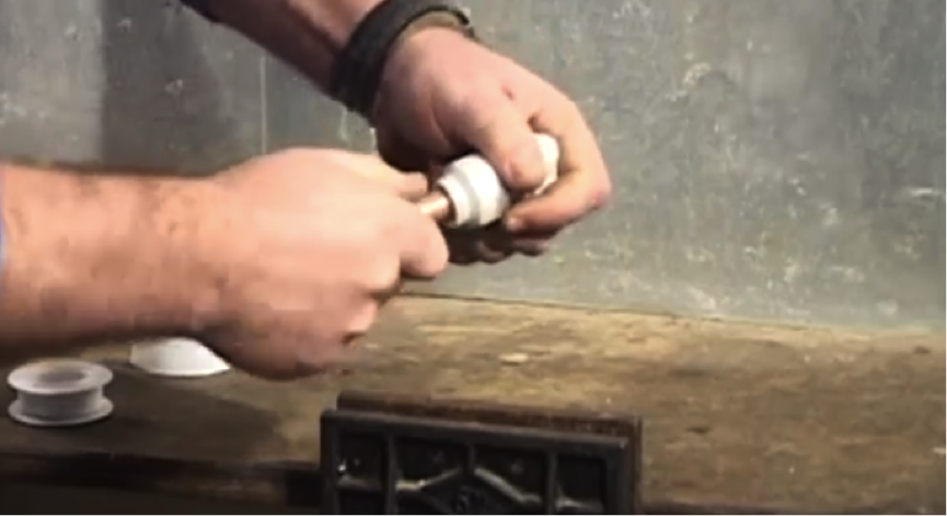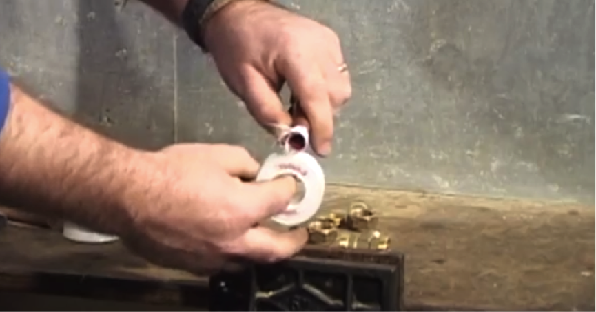 Take your PTFE tape and wrap it around the end of the pipe that’s forming the join. A couple of complete turns of the tape should be enough to help form a tighter seal.