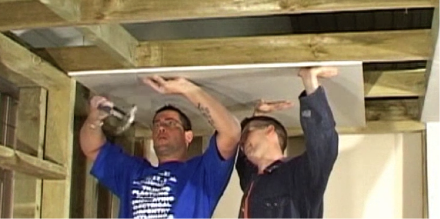 You may need help to carry out this step as boards can be heavy. Align the board to the wall and hammer it to the timber frame, using the correct type of nails.