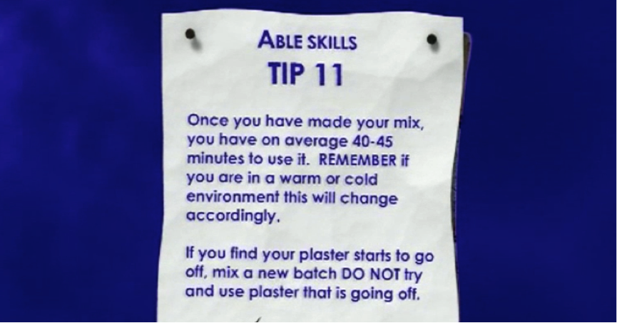 Unlike bonding plaster, finishing plaster needs to be very well mixed. Any dry or lumpy parts will affect the quality of your finish and your work. Like when mixing bonding plaster, using half a bucket of water means by the end you should have a full bucket of plaster.