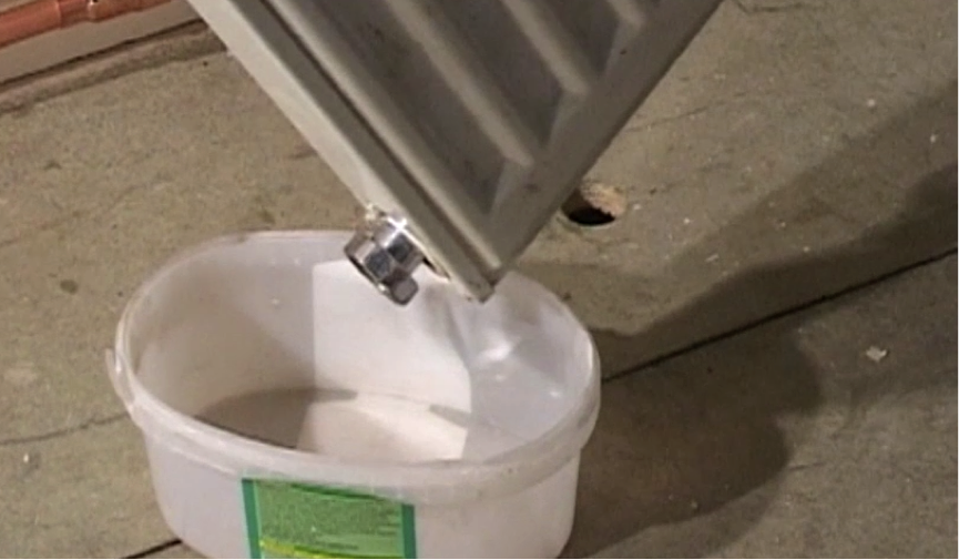 Now carefully lift the radiator off the brackets and empty the sludge into a pot or bucket placed nearby.