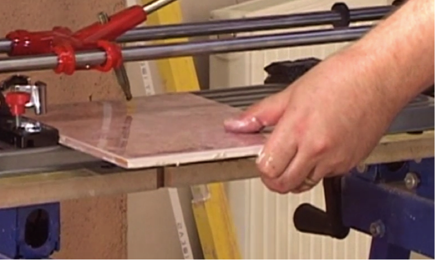 Score out the lines on the tile using your cutter, being careful not to go too far past the meeting point. Then take your tile snips and gradually chip away the excess tile. Let the teeth do the work and don’t apply too much pressure as the tile may crack or break.