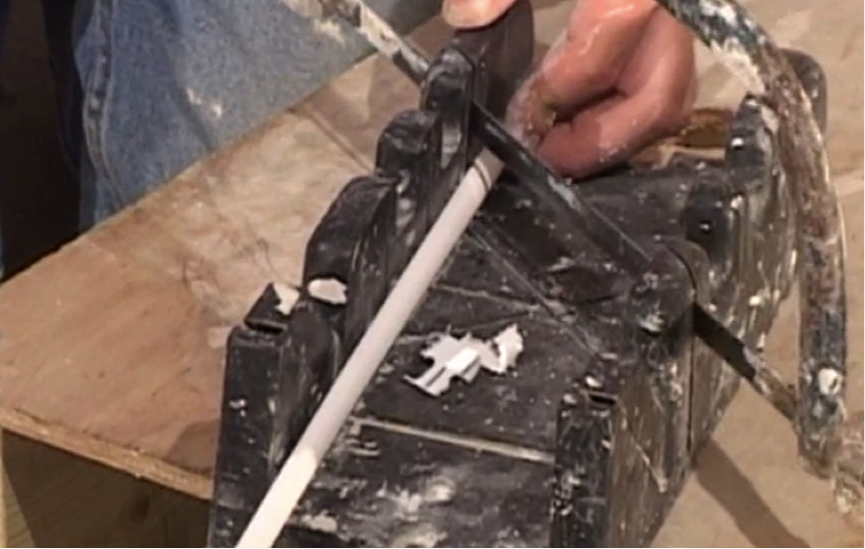 - Remember to have the trim standing in the mitre block, and not laying down, or you will make an incorrect cut
