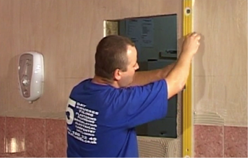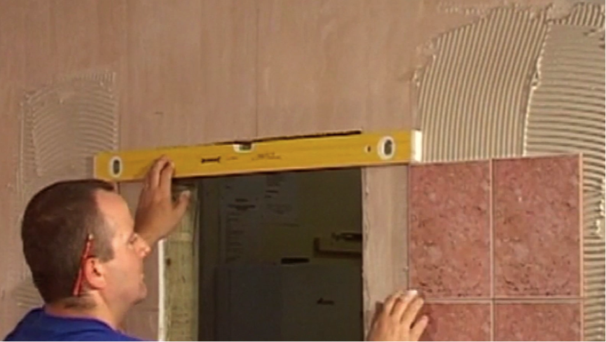 It’s important to keep the tiling around your window square so that your cuts will fit neatly. To do this, measure between the top and bottom of the gap between the tiles on either side of the window, using your level. This way you can make sure they are straight.